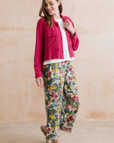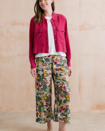 Greta Ceres Print Cropped Trousers Laurel Green