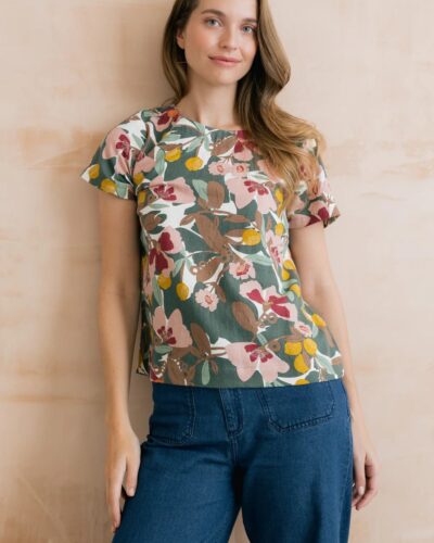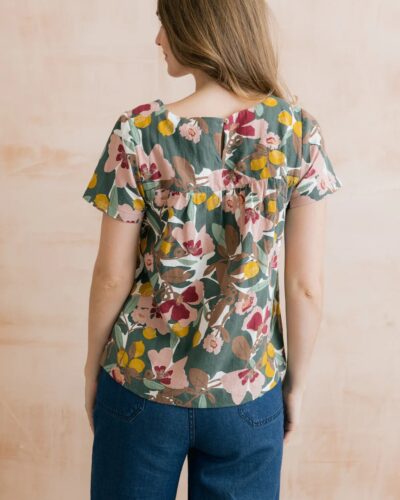Rosali Linen Blend Printed Top Laurel Green