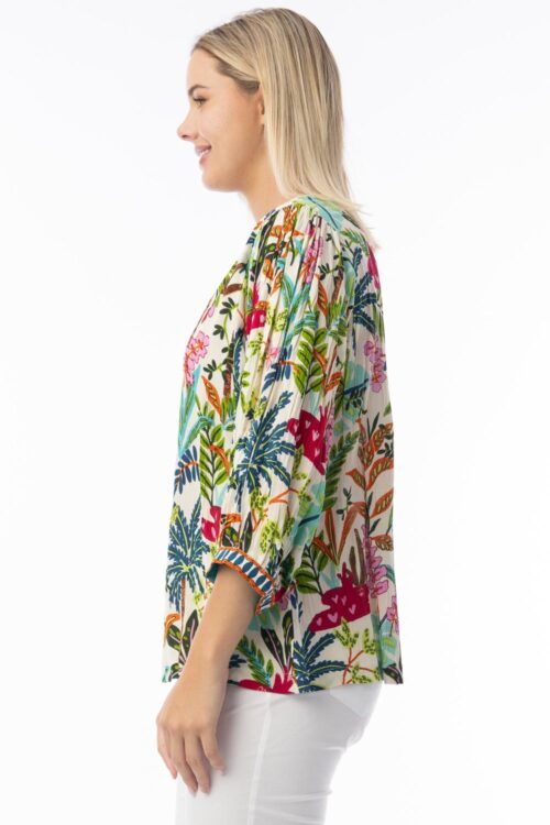 Contemporary S/S Leaves Blue Cotton V Neck Dress