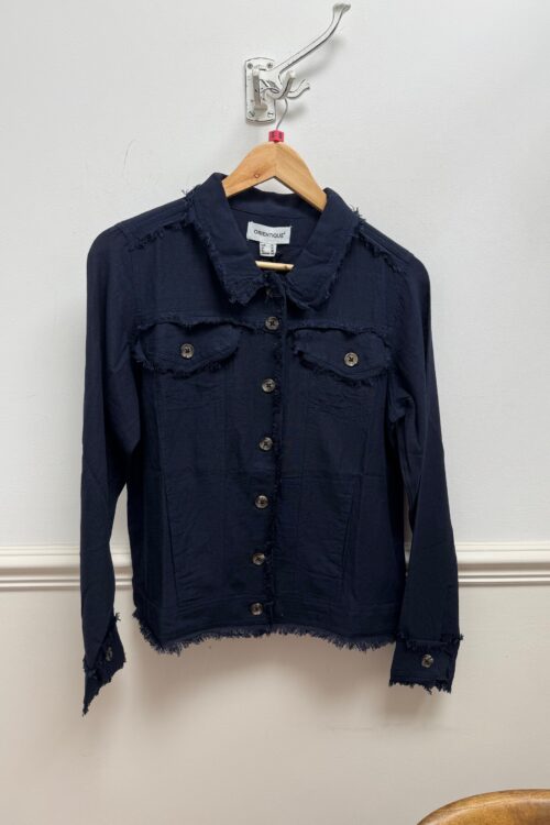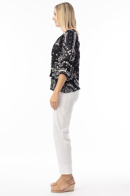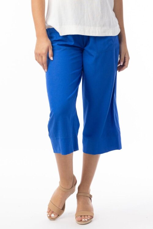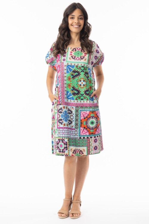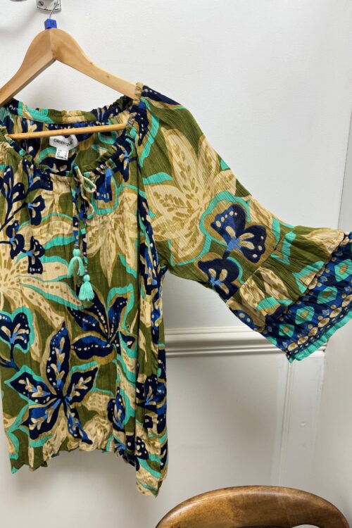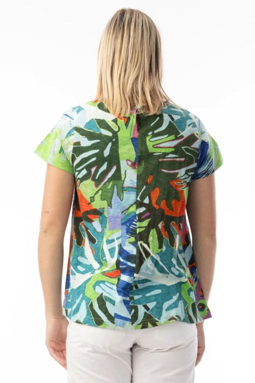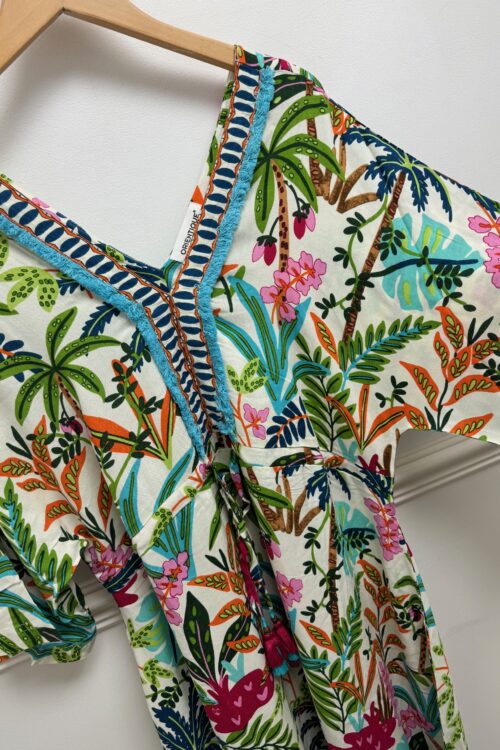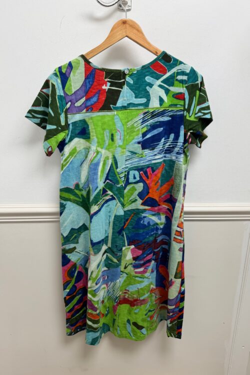 Contemporary S/S Leaves Blue Cotton V Neck Dress