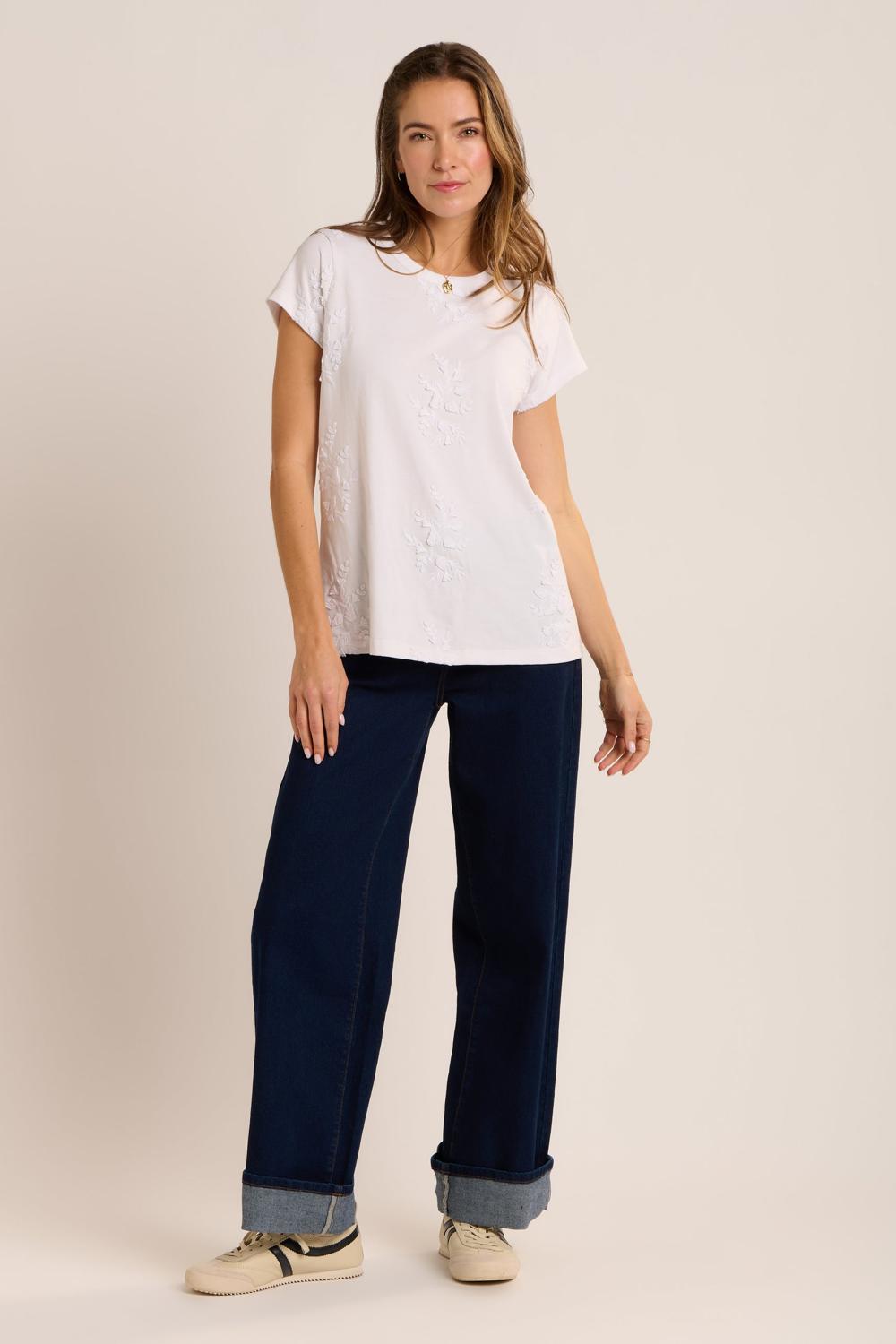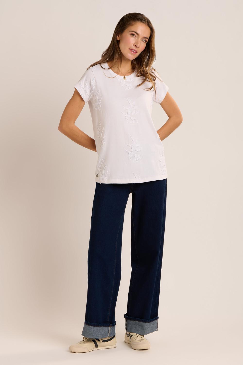 Crew neck embroidered t-shirt, crisp and fresh to wear with jeans or chinos coming into spring