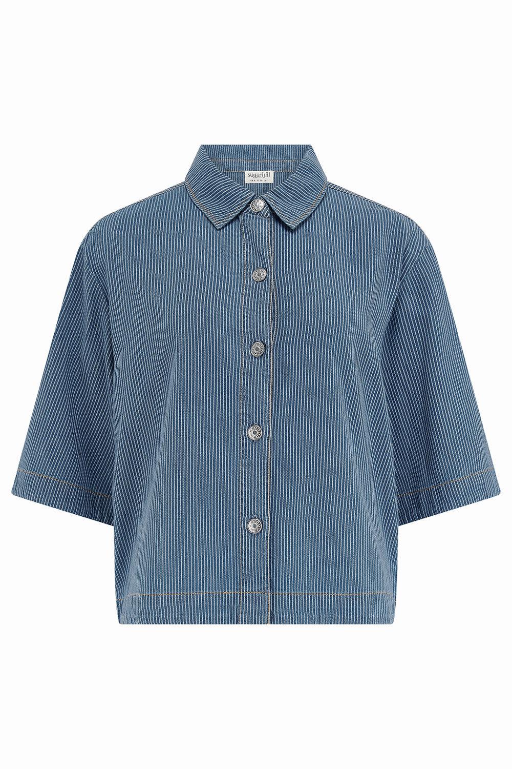 The Amity Jacket from Sugarhill Brighton is a fresh, contemporary layering piece with a relaxed, modern feel. Designed in stylish blue pinstripe denim, this jacket features a boxy silhouette and mid-length wide sleeves for an effortless, on-trend look. Finished with a classic shirt collar and button-down front, it’s perfect for layering over tees, knits or dresses to add texture and interest to casual outfits.