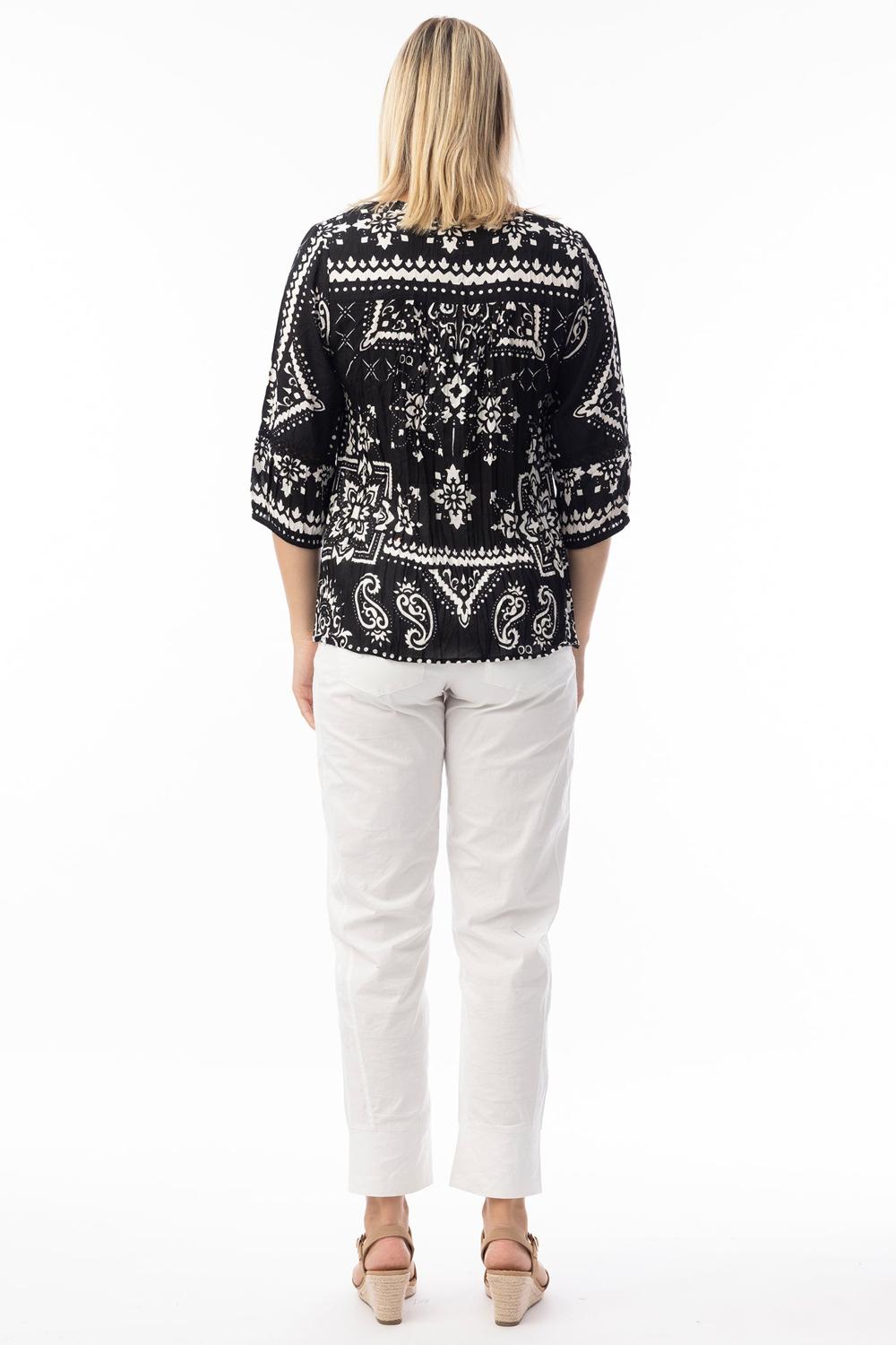 Turn heads with our stunning garment, the Gathered Sleeve Boho Top. Featuring an open neckline with tassel details, three-quarter gathered sleeves, vibrant colours, gorgeous prints, and a relaxed silhouette, this is the perfect top to throw on with a pair of our linen pants at the beach!