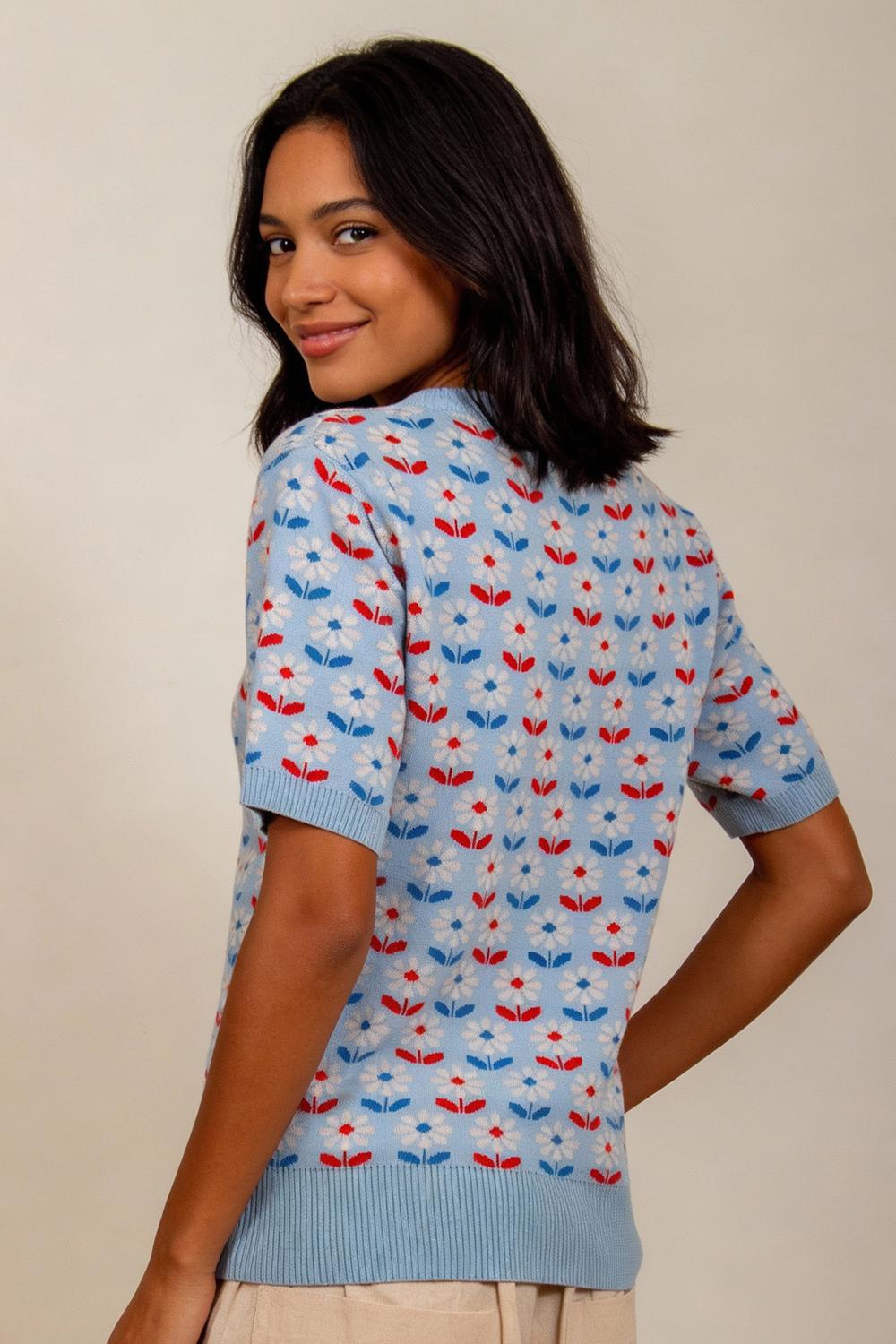 Gorgeous Short sleeve spring jumper with a daisy design throughout.