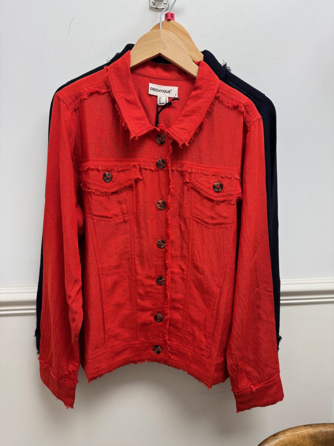 Western style jacket in two plain colours, button front two breast pockets and long sleeves.