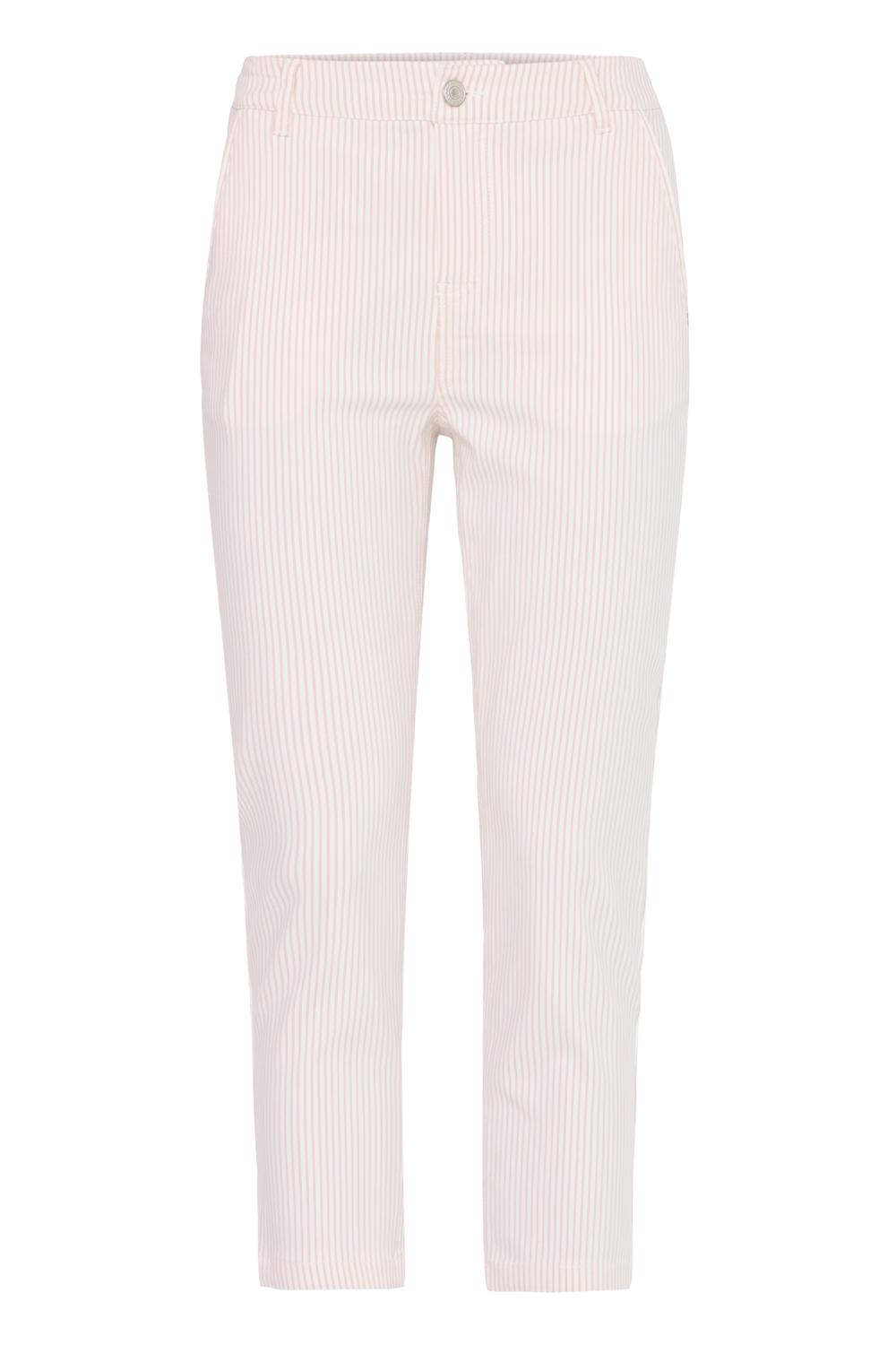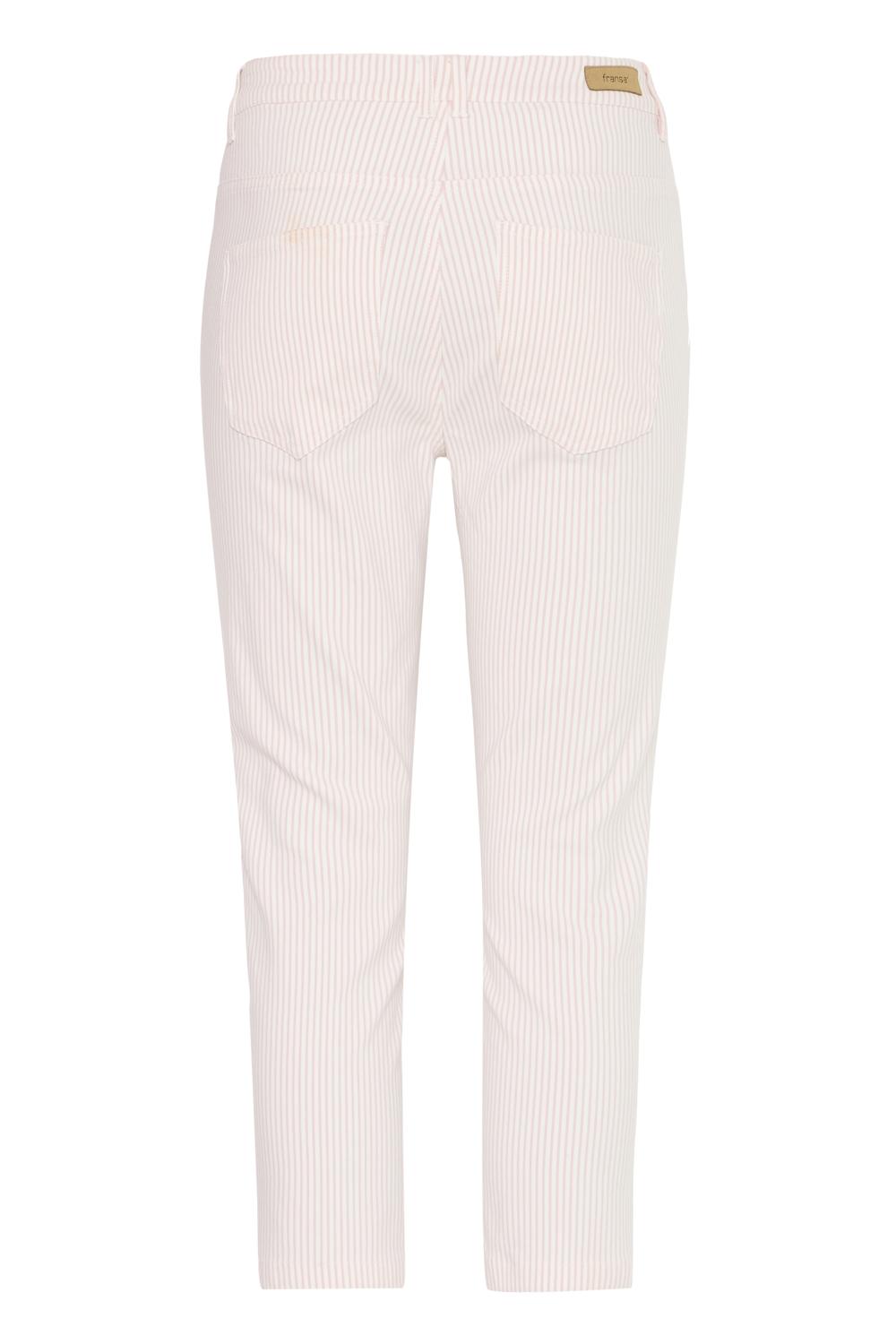 Stretchy capri pants in white and pink stripe, with side pockets and zip fastening.