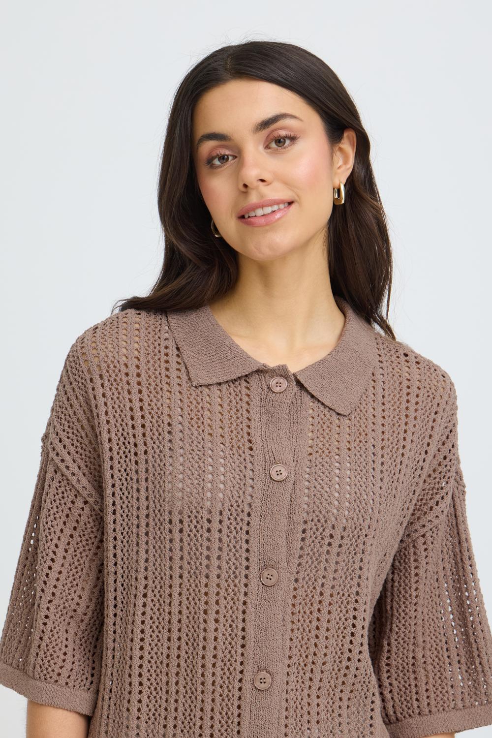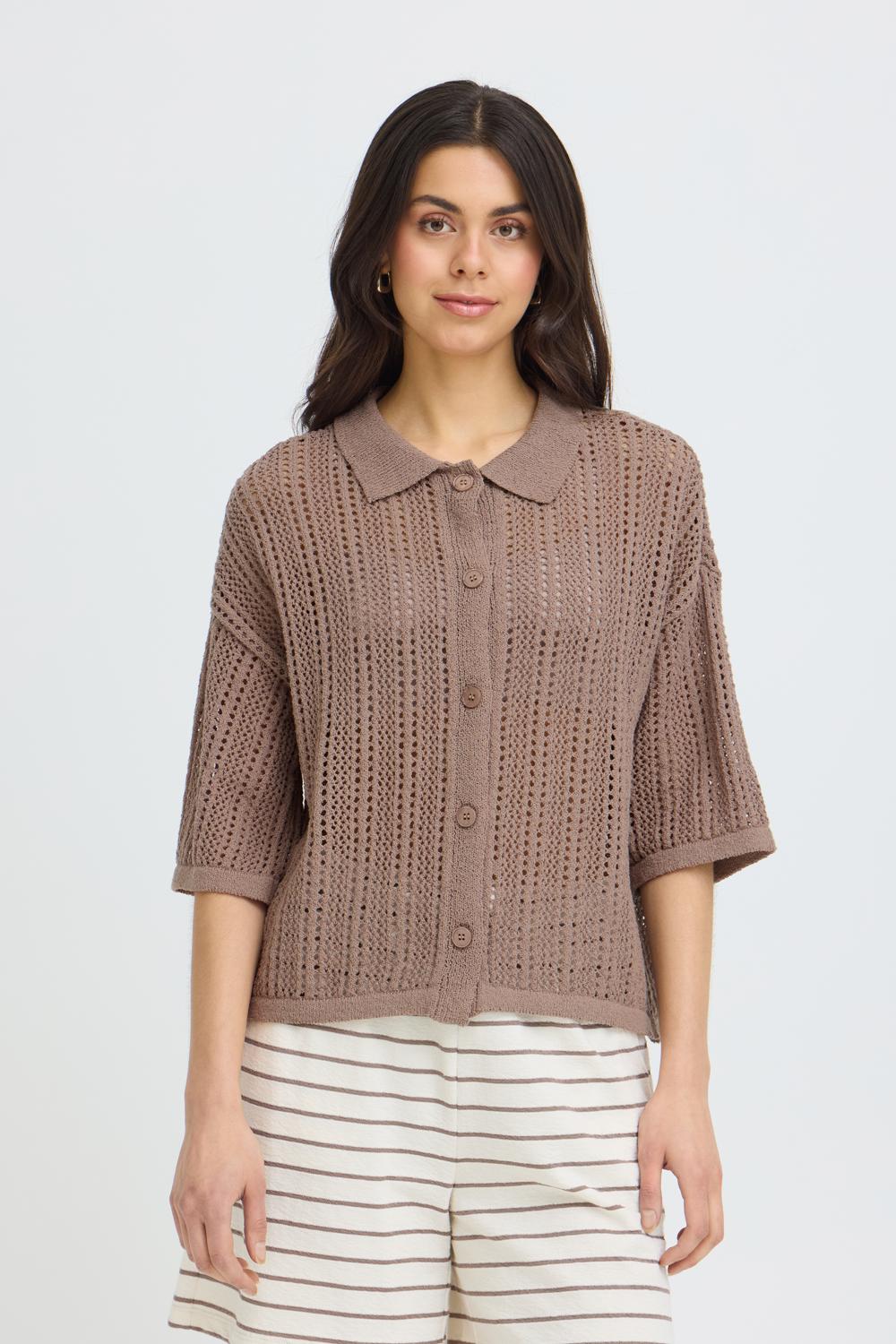 Gorgeous neutral cardigan has a collar and open knit, button front, loose fit and hip length, will look great with any style trouser or jeans ,wear with trainers or a heel for two different looks.
