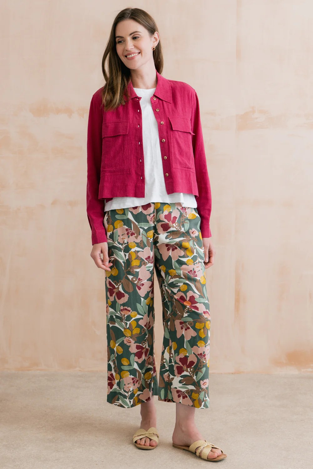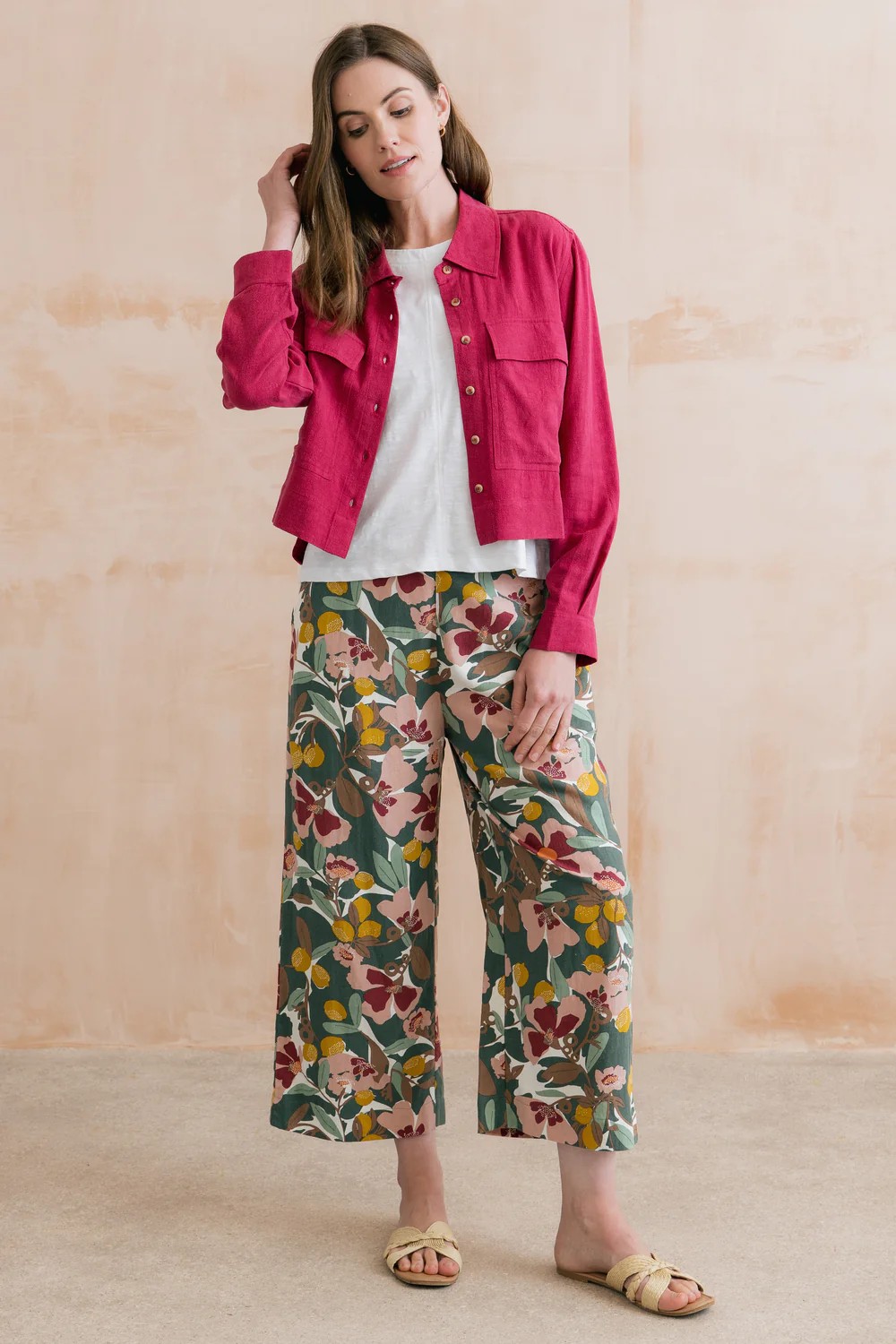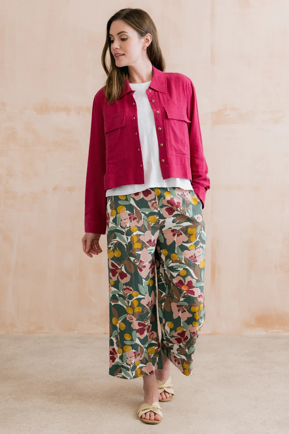 With a flat front and elasticated back waist, the flattering cropped wide-leg shape skims the body for a perfect fit, whilst the blended yarn allows for a smooth drape without the usual creasing caused by pure linen. Pair with a simple t-shirt for an easy everyday look or go bold with print-on-print by pairing with our Rosali Top. .