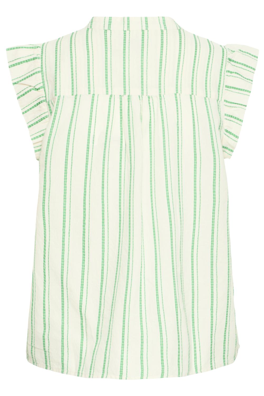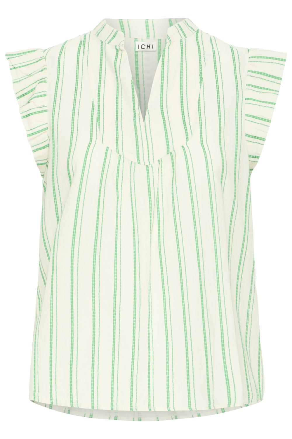 Sleeveless cotton top/blouse with frill around the armhole, wear with jeans and sandals for a spring look.