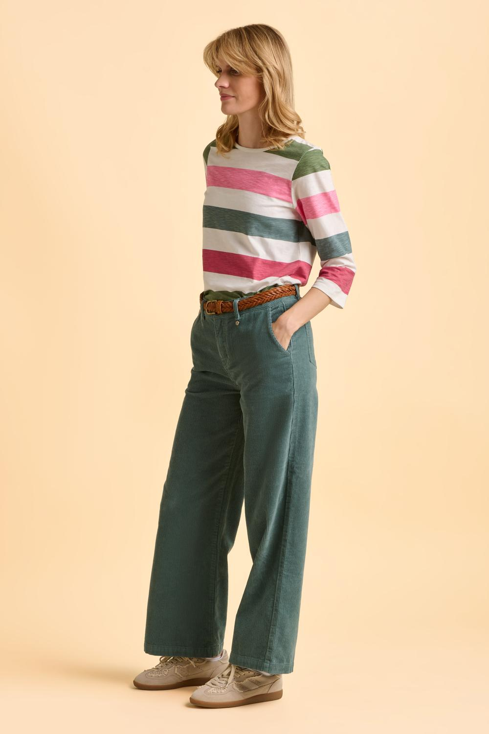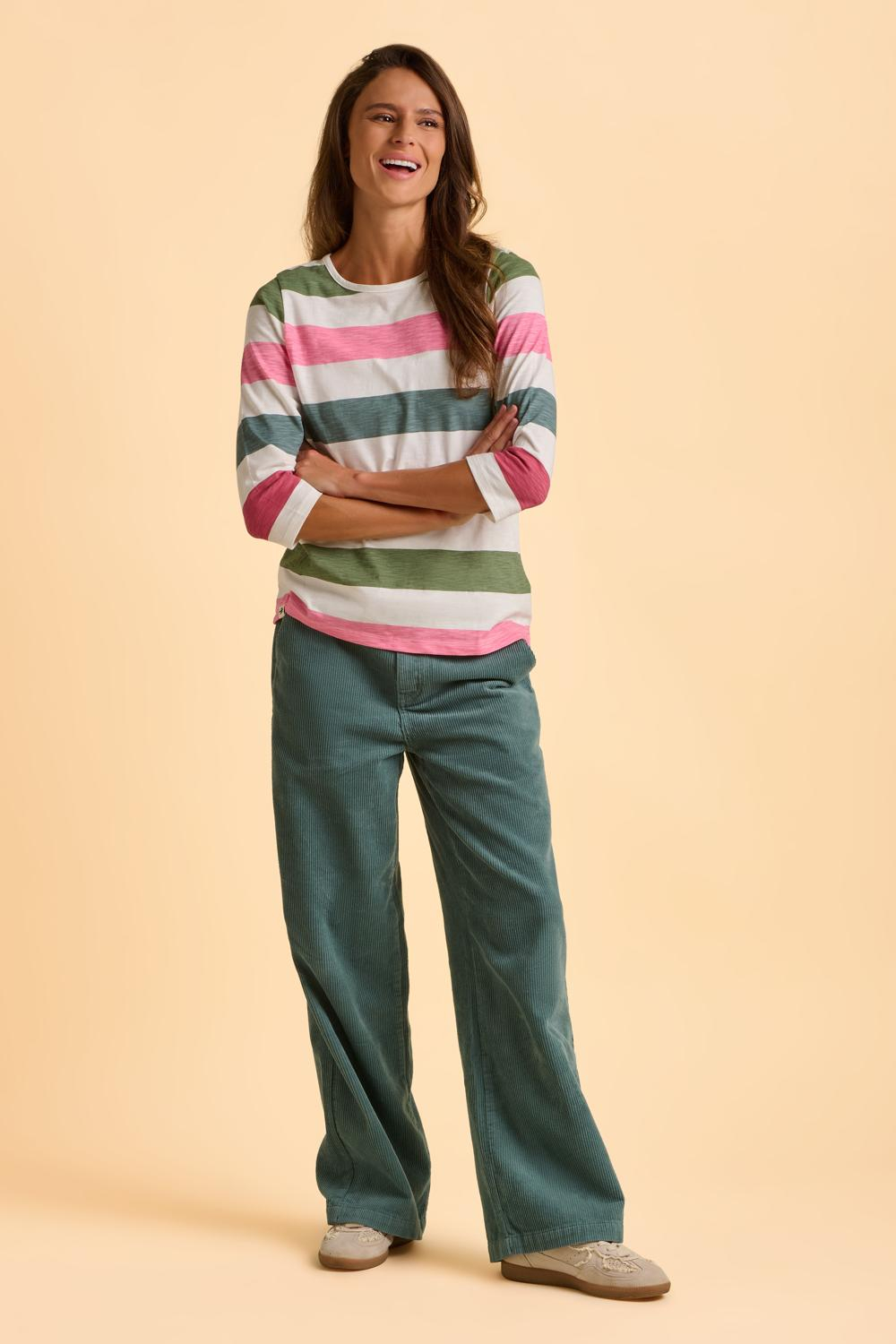 Our Lulworth tee brings beach-day ease to everyday wear. Made from 100% cotton with soft block stripes in watermelon, moss and blush, this tee is lightweight, breathable and ready for anything. Layer with denim and a jacket, or style under dungarees for that laid-back, beach-to-town look.