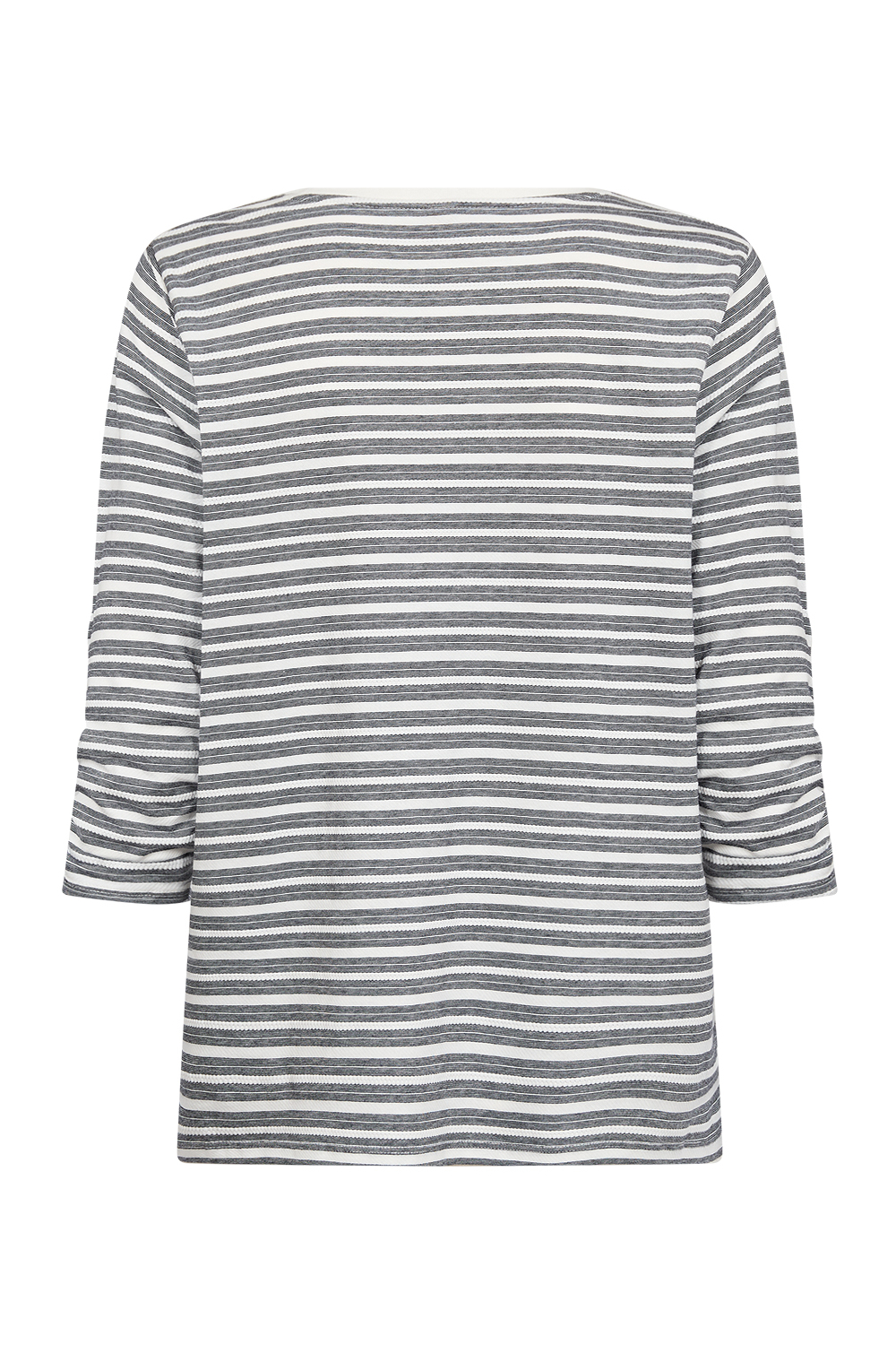 SC-CHANIE 2 is a Blouse made from 100% organic cotton. This blouse features a round neckline, playful striped pattern, and 3/4 length sleeves with subtle ruched details. Pair it with jeans for a relaxed look or with a skirt for a cool appearance