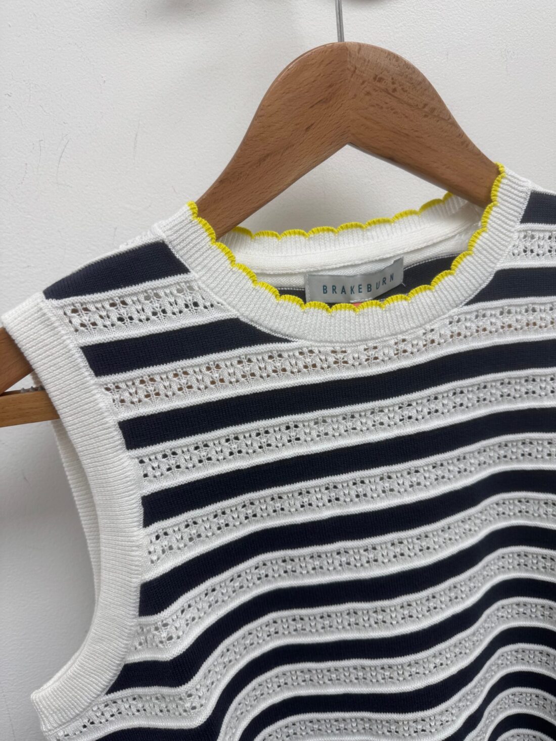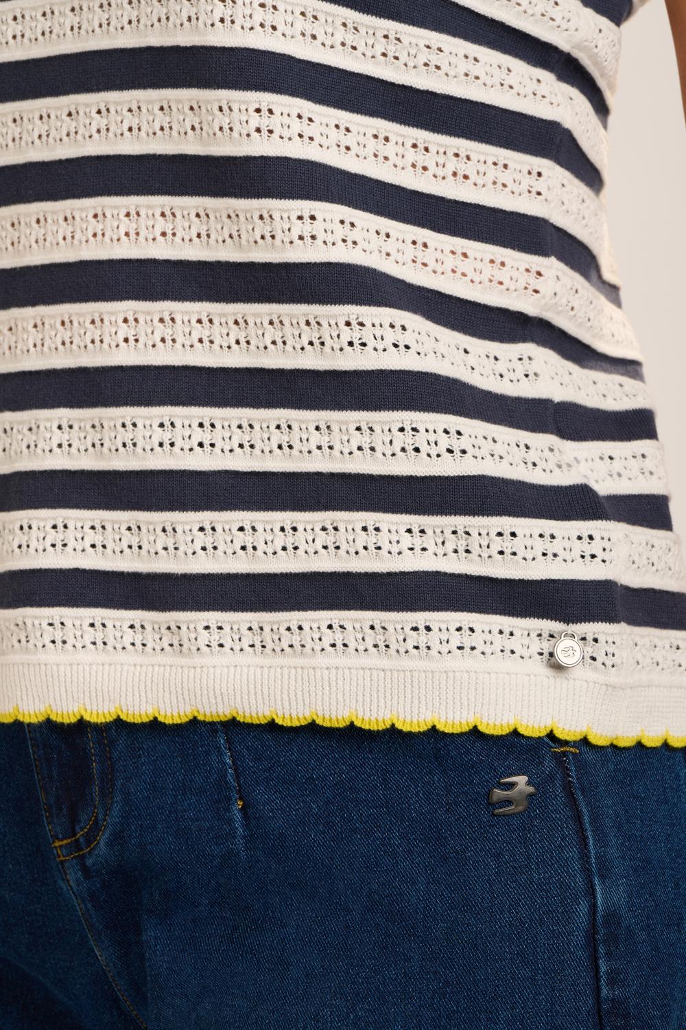 Such a cute little tank in Navy & White stripe, touched with a hint of Yellow on the edges.