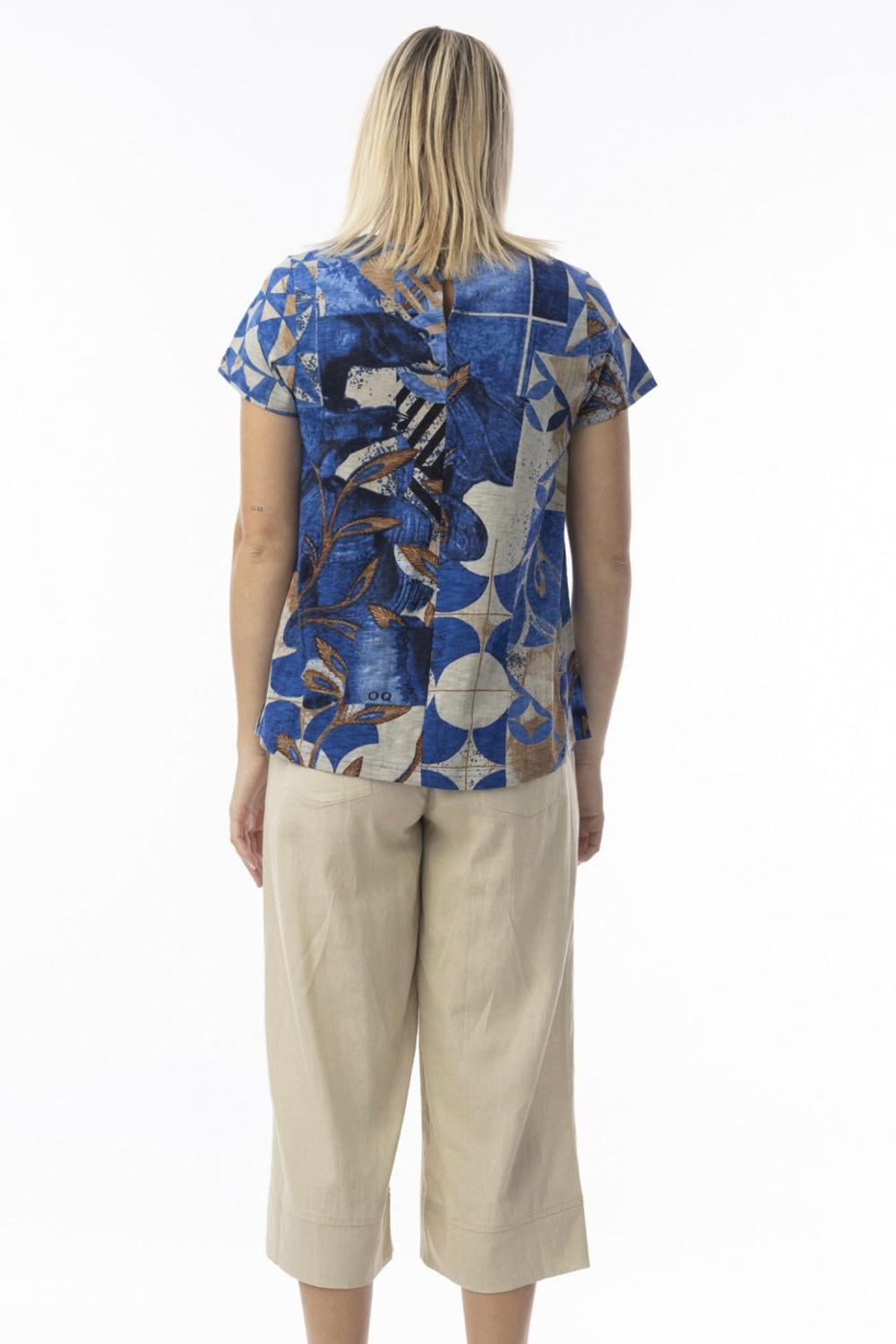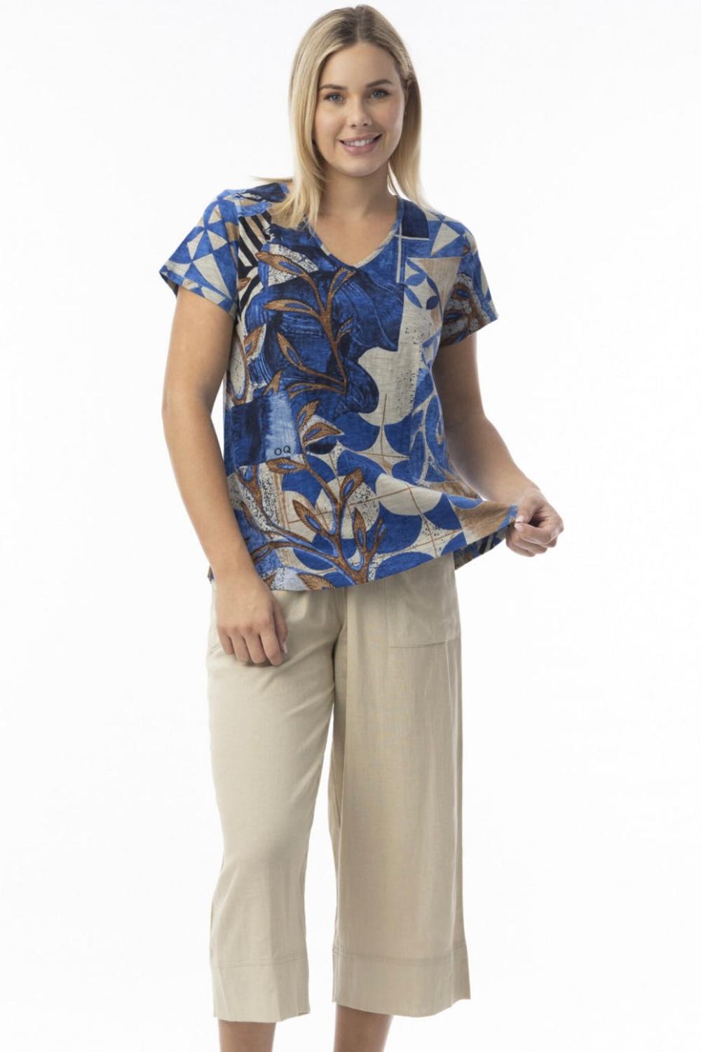 V neck Flared tee with short sleeves, wear with jeans or trousers for a fun colourful look.