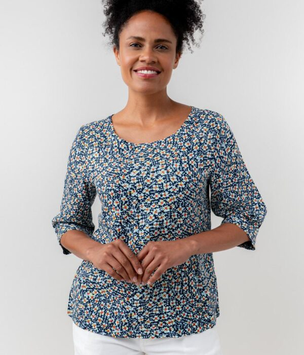 Myrtle 3/4 Sleeve Seersucker Check Top